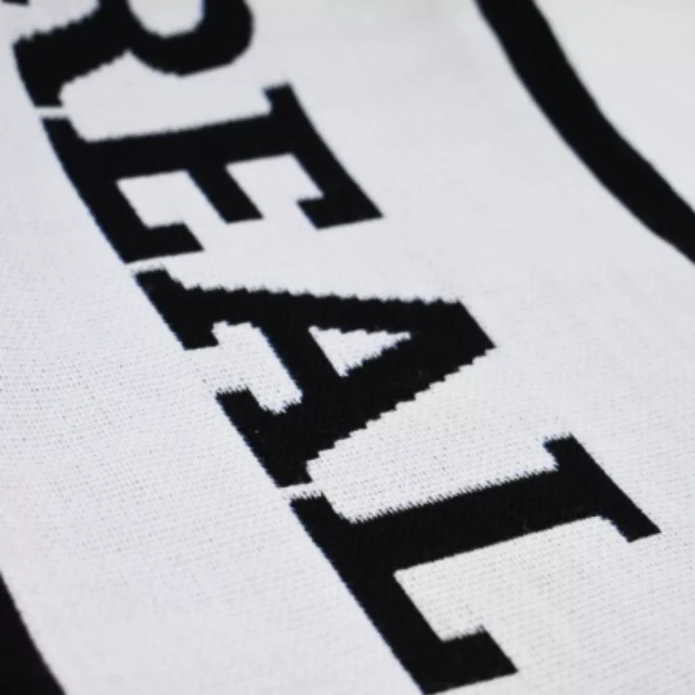 Modern és látványos Real Madrid szurkolói sál szürke alapszínnel, dinamikus mintákkal, és fekete szegélyekkel. Nagyban a Real Madrid neve, illetve a sál mindkét végén a klub címere.